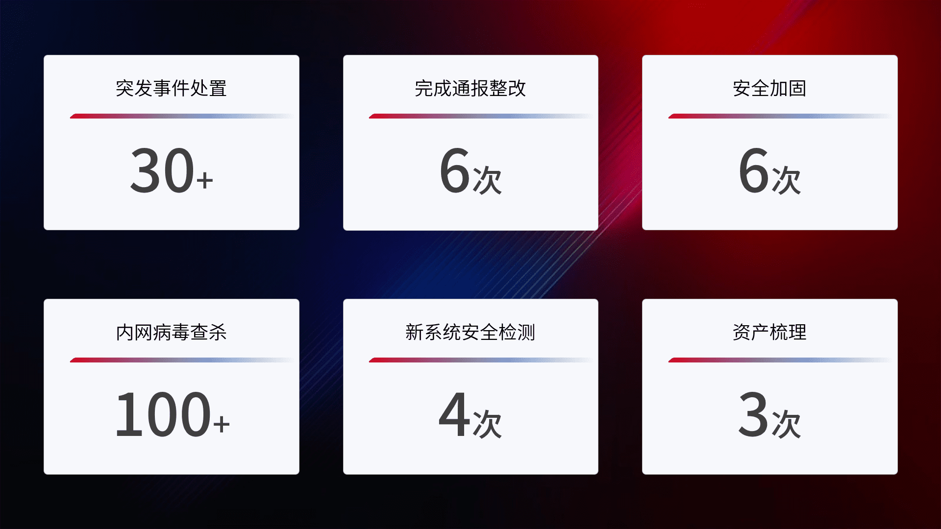 网络安全加固与风险管理:通过技术加固手段,,,,如加强区域隔离,,,,缩减攻击内网横向移动的范围;优化现有网络安全管理制度,,,,降低网络威胁暴露面,,,,减少被黑客攻击的可能性。。